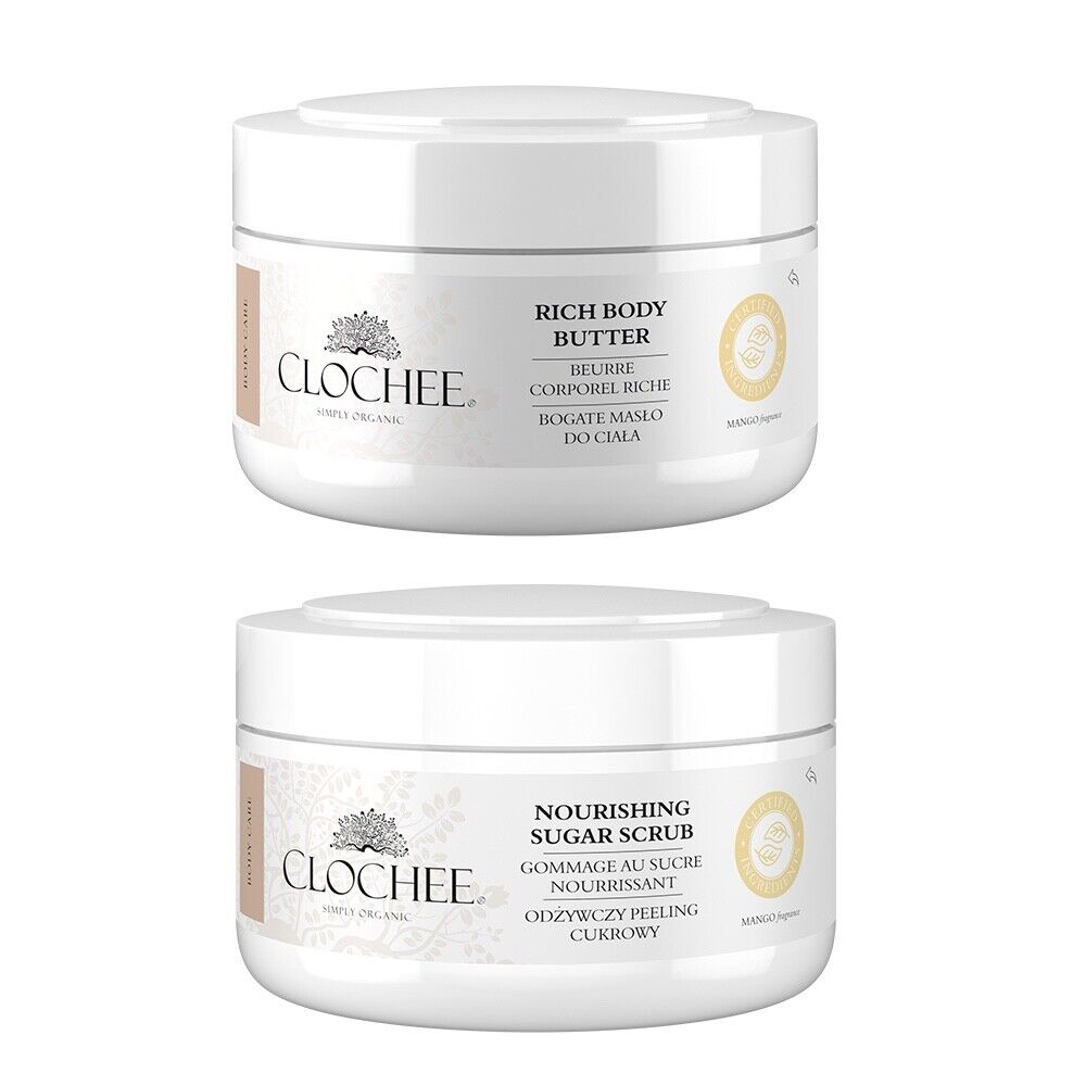 Clochee Rich Body Butter 250ml + Nourishing Body Scrub 240g Mango Scent Set
