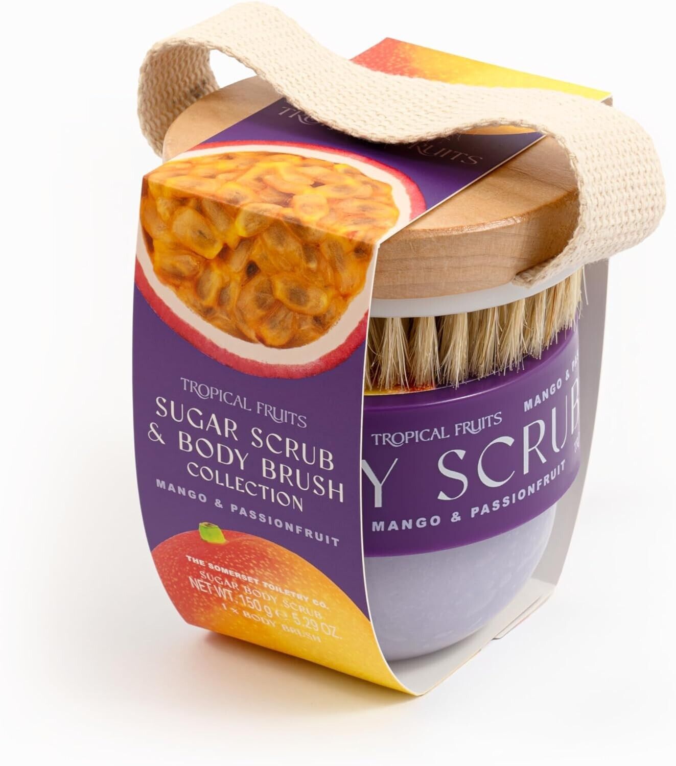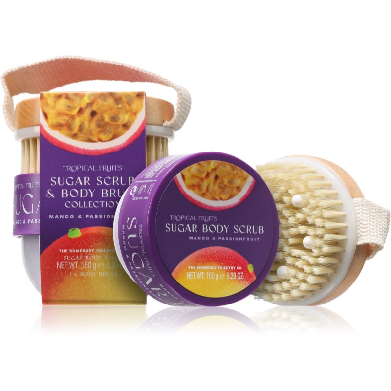 The Somerset Toiletry Co. Tropical Fruits Mango & Passionfruit sugar body scrub + hairbrush 150 g