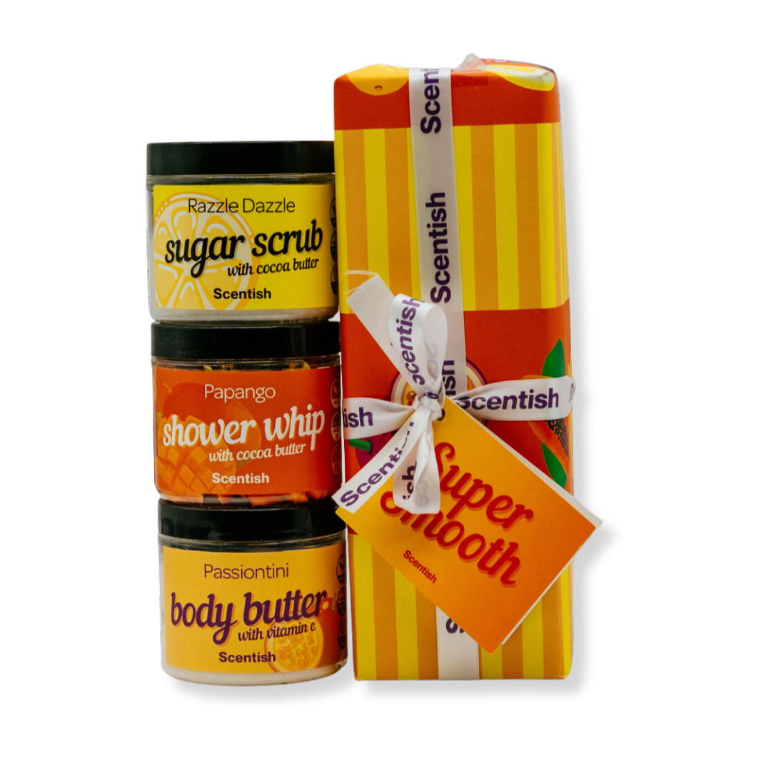 Silky Smooth Gift Set Mango Lemon Body Butter Sugar Scrub Whipped Soap Scentish