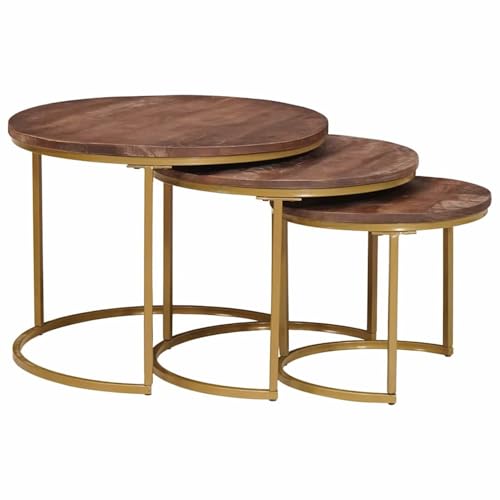 Gecheer Nesting Coffee Tables Set - Mango Wood & Powder-Coated Steel - Modern Design - Versatile Living Room Furniture Model4104638