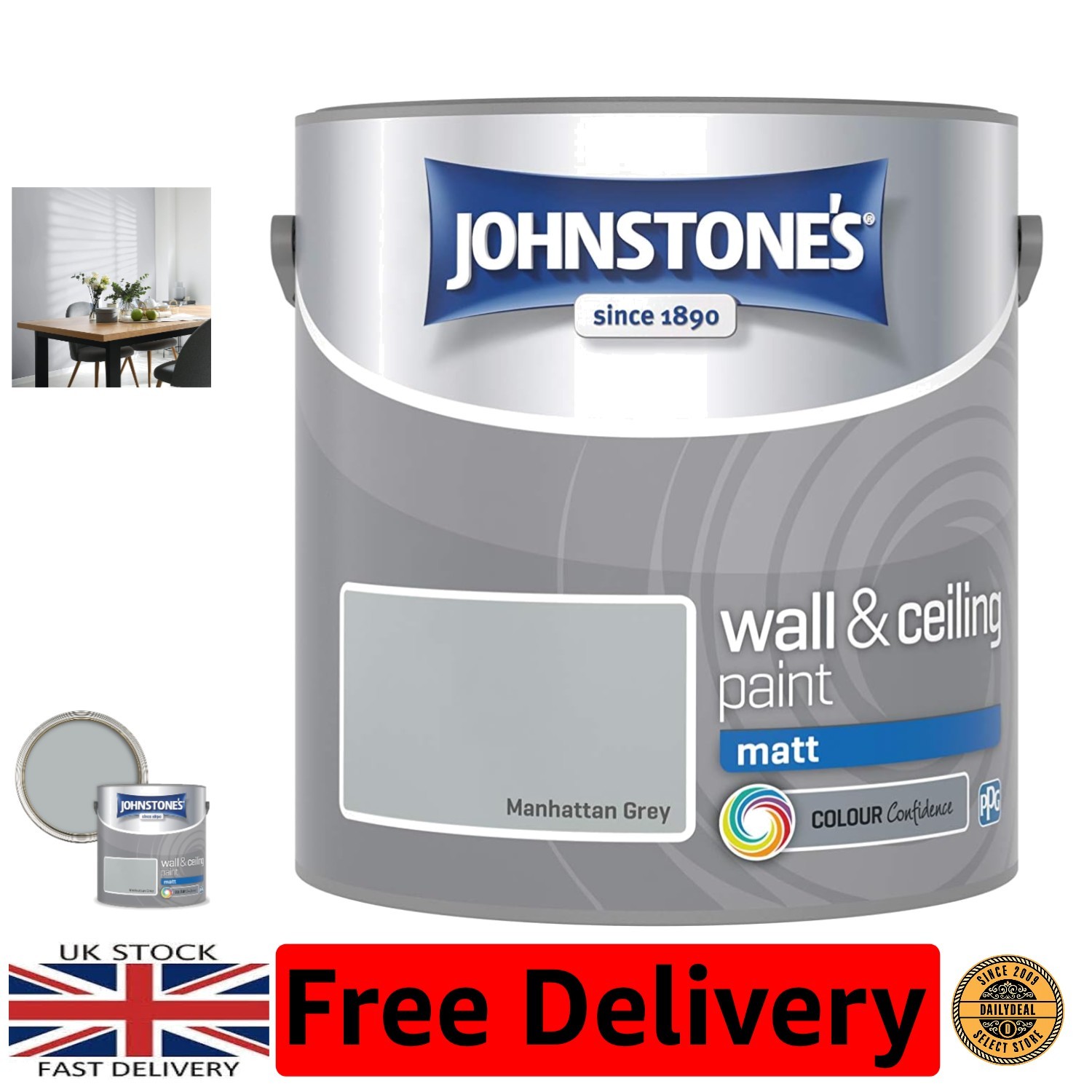Johnstone's - Wall & Ceiling Paint - Manhattan Grey - Matt Finish - Emulsion Paint - Fantastic Coverage - Easy to Apply - Dry in 1-2 Hours - 12m2 Coverage per Litre - 5L, Pack of 1