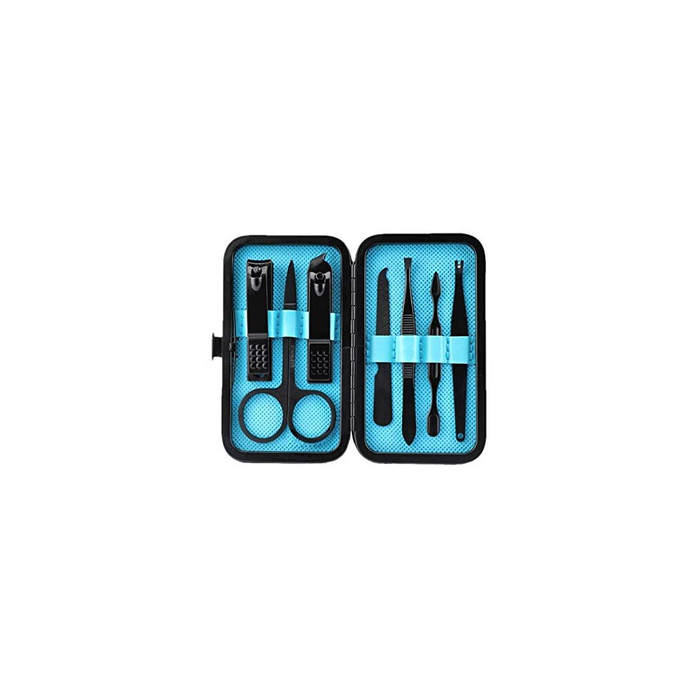 Manicure Pedicure Set | Nail Clippers | Scissors | Tweezers | Ear-pick | Black Stainless steel Men Women Travel Size Nail Grooming Tool Kit Blue