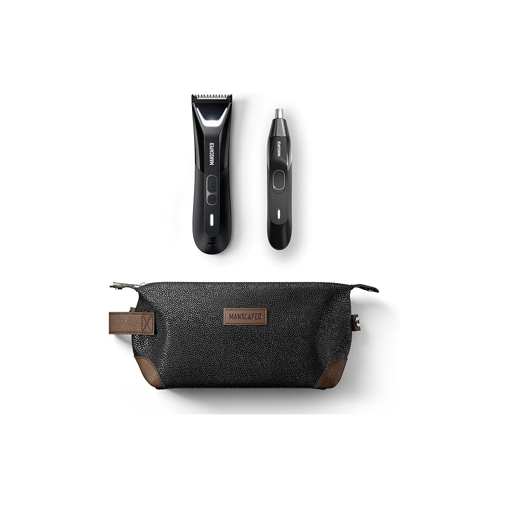 MANSCAPED® The Tool Box 4.0 Contains: The Lawn Mower® 4.0 Electric Trimmer, The Weed Whacker® 2.0 Nose & Ear Hair Trimmer, The Plow® 2.0, The Shears Four Piece Luxury Nail Kit, The Shed Toiletry Bag