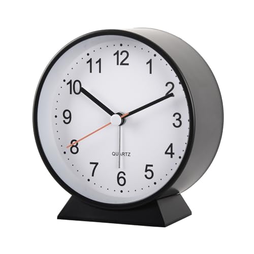 Analogue Alarm Clock, Bedside Clock with Night Light, Retro Silent Mantel Clocks for Mantelpiece Office Desk and Bedroom, Battery Operated Simple Round Alarm with Big Numbers for Seniors Kids, Black