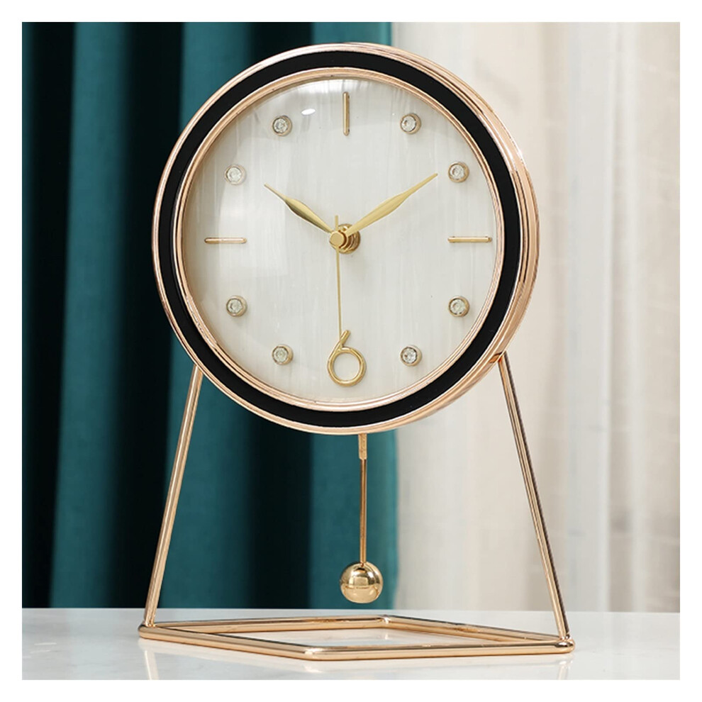 Mantelpiece Clock Black and Gold Metal Tabletop Pendulum Clock for Modern Living Room Decor