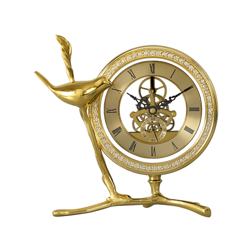 Mantelpiece Metal Desk Clock with Hollow Dial and Rhinestones, Creative Jumping Seconds Table Clock 7.4 Inches for Living Room