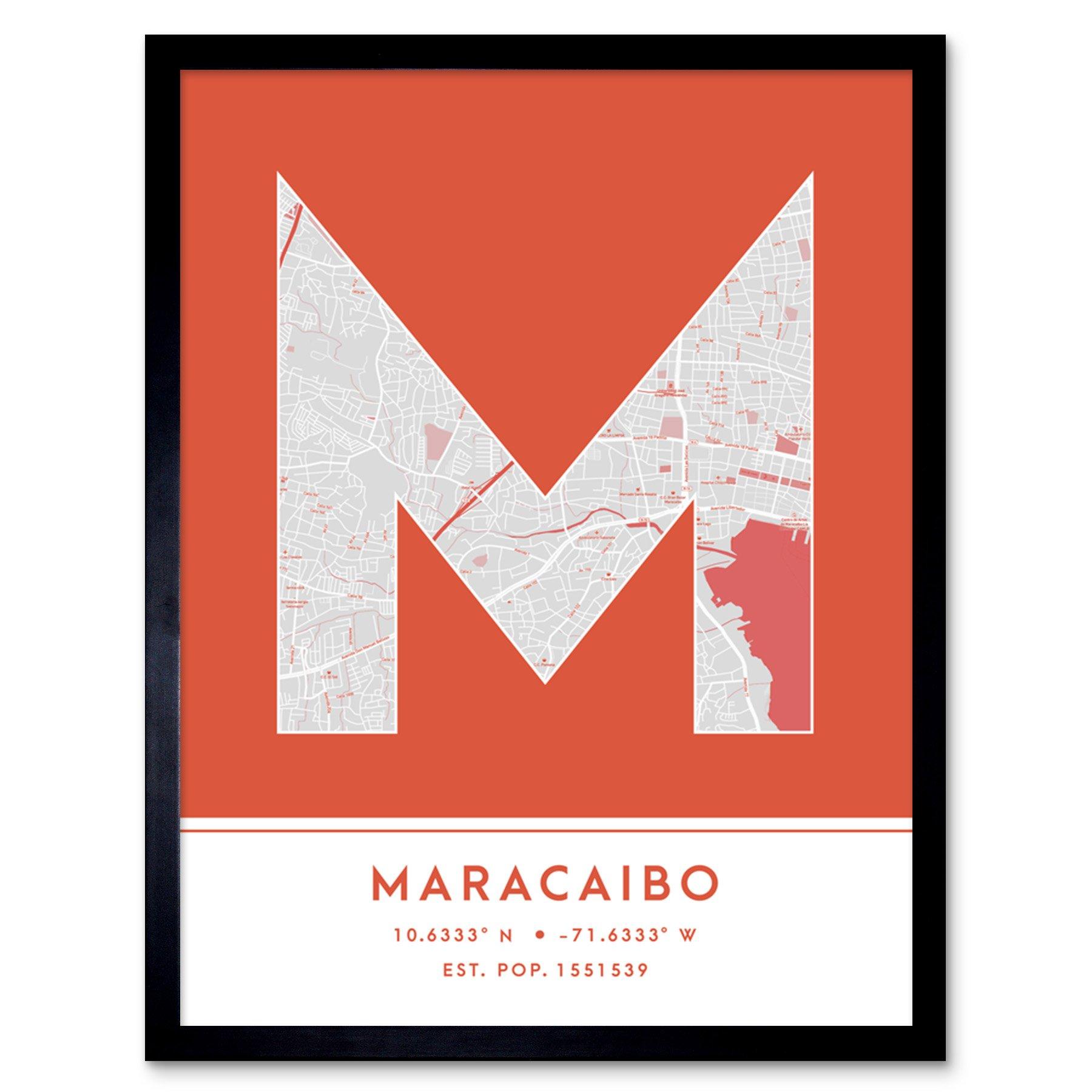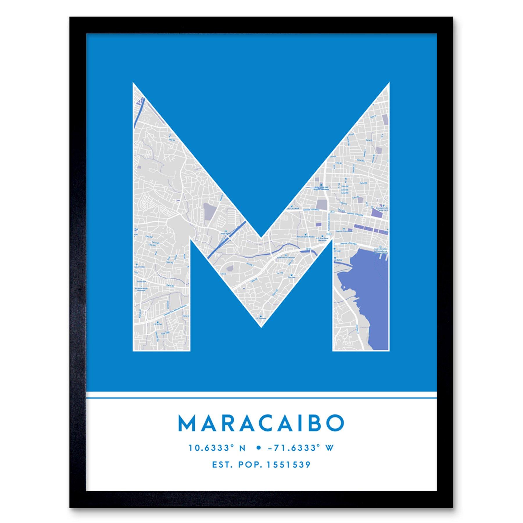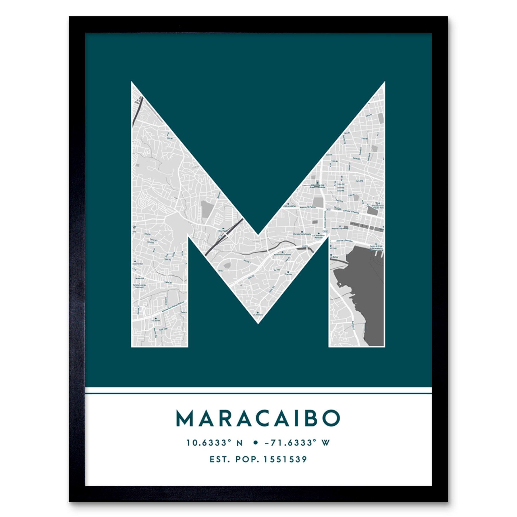 Maracaibo Venezuela City Map Modern Typography Stylish Letter Framed Word Wall Art Print Poster for Home Décor