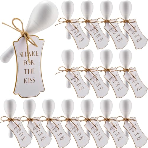 Sonwyoung 16 Pcs Mini Wooden Maracas for Wedding Wooden Maracas Bulk Maracas with Gift Tags Musical Instrument for Wedding Party Favor(Plain White)