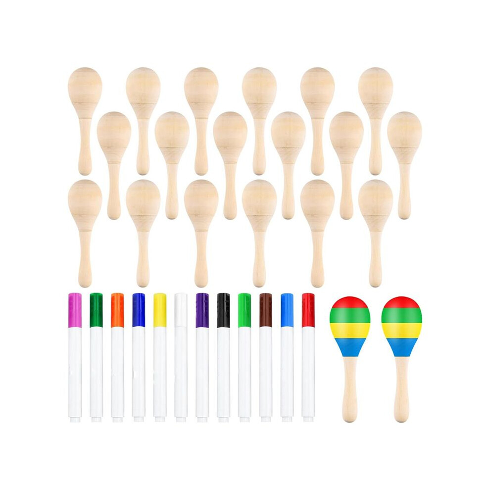 20Pcs DIY Wooden Maracas for Kids, Maracas for Mexican Fiesta Party Favors with 12Pcs Multicolor Pens, Party