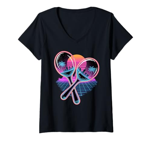 Womens Retro Synthwave Maracas V-Neck T-Shirt