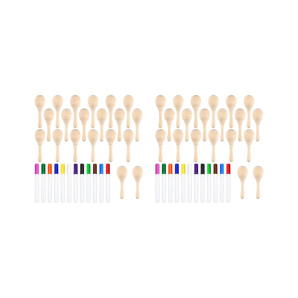 40Pcs DIY Wooden Maracas for Kids, Maracas for Mexican Fiesta Party Favors with 12Pcs Multicolor Pens, Party