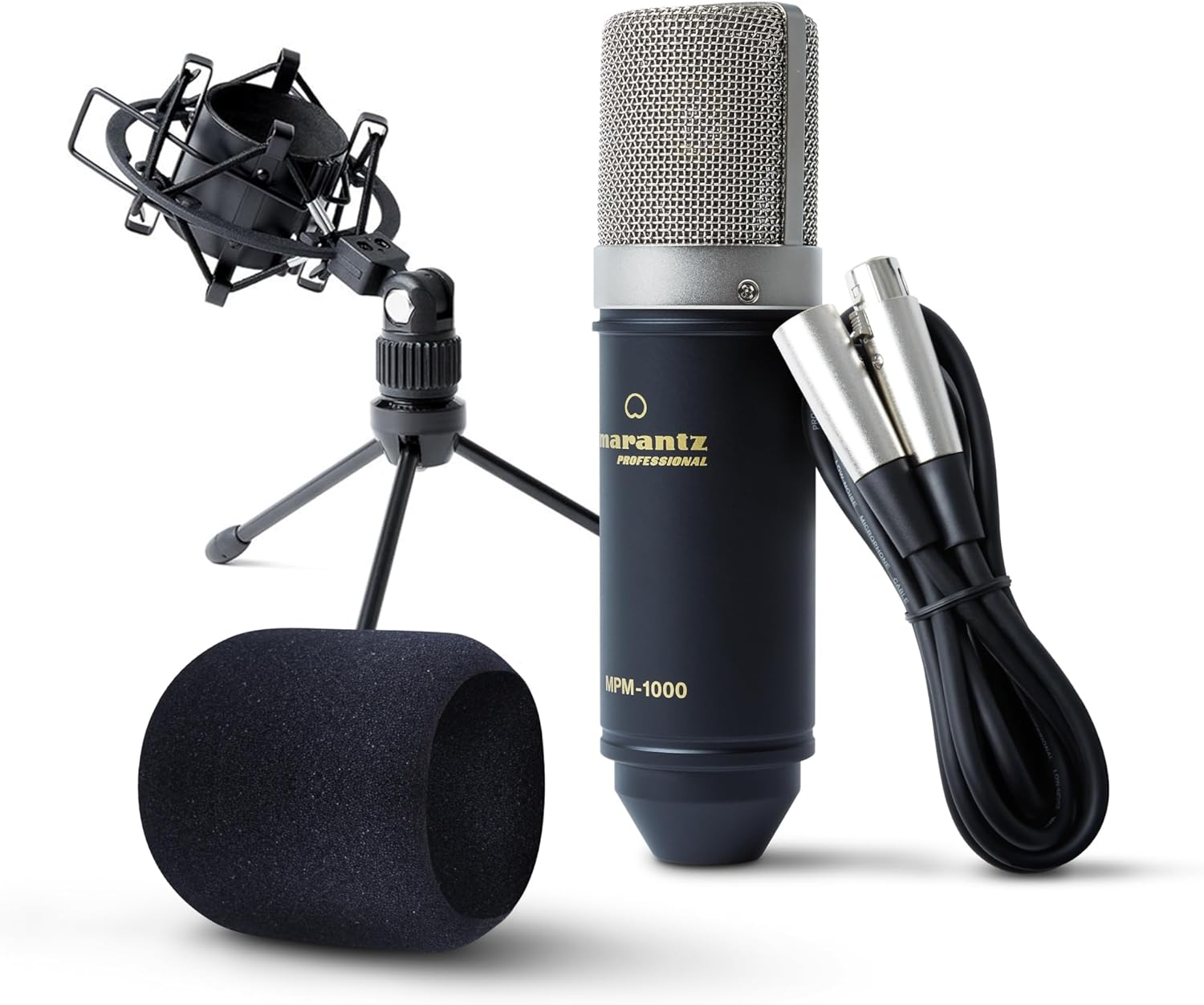 Marantz Professional MPM1000 Large Diaphragm Condenser Microphone with Windscreen, Shockmount, Tripod Stand and XLR Cable