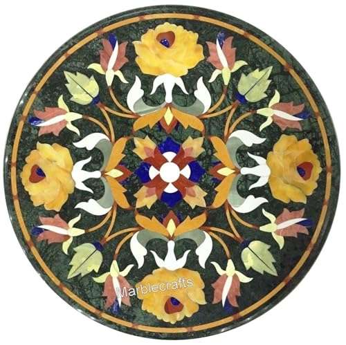 Antique Art Inlay Sofa Table Top for Living Room Decor 30 x 30 Inches Black Marble Coffee Table to add royal & Antique Look in your Lifestyle