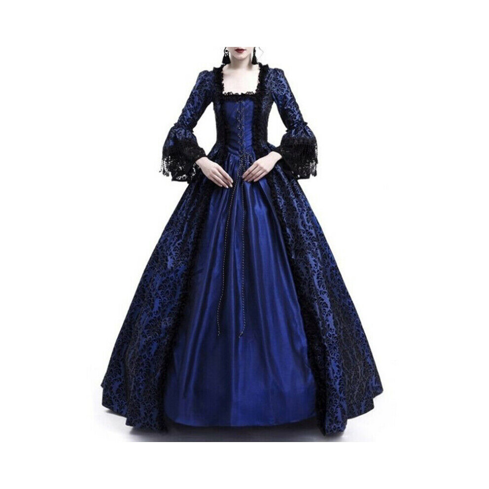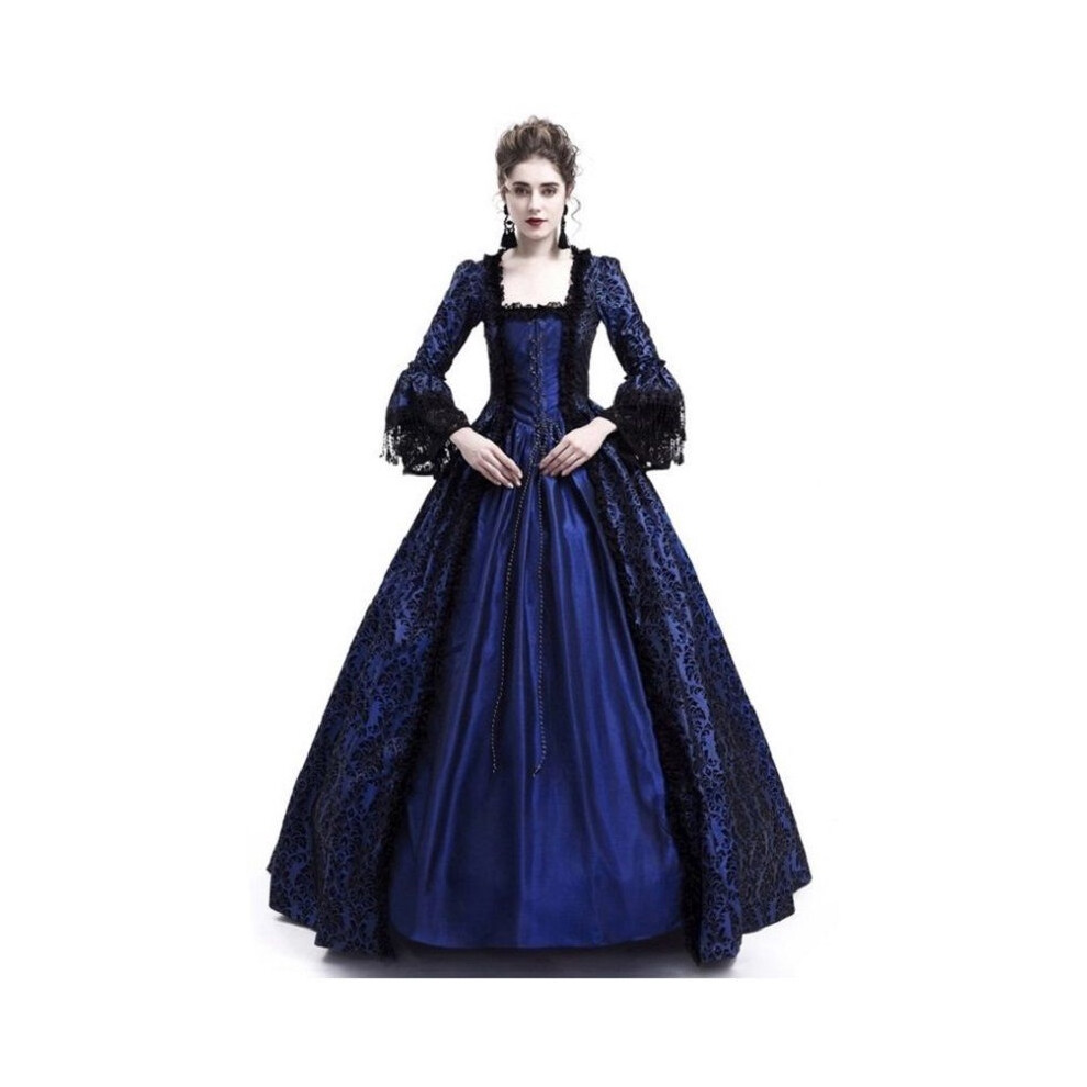 (Blue, L) Marie Women Medieval Antoinette Costume Renaissance Gothic Maxi Dress Victorian