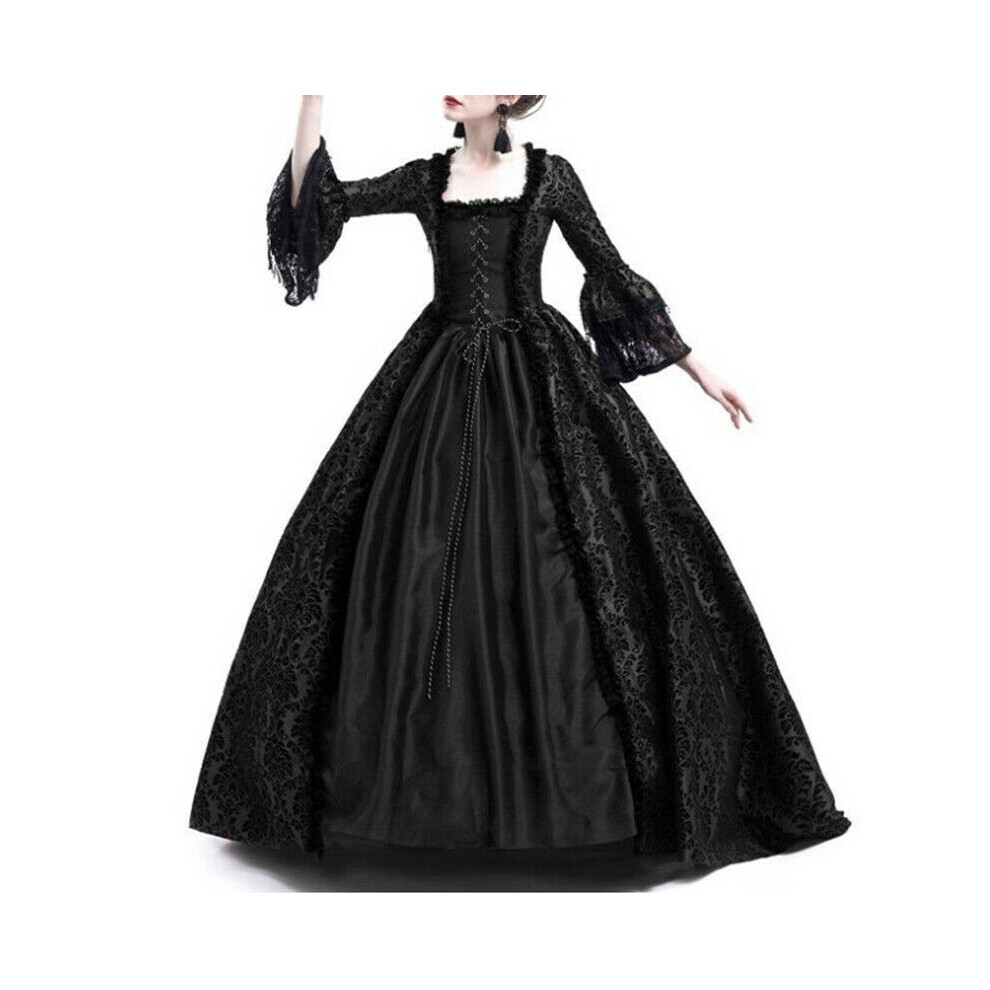 (Black, L) Marie Women Medieval Antoinette Costume Renaissance Gothic Maxi Dress Victorian