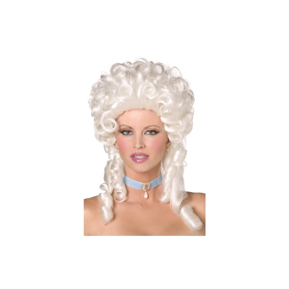 White Shoulder Length Baroque Wig With Ringlet Curls. - wig baroque white fancy dress antoinette ladies smiffys marie costume