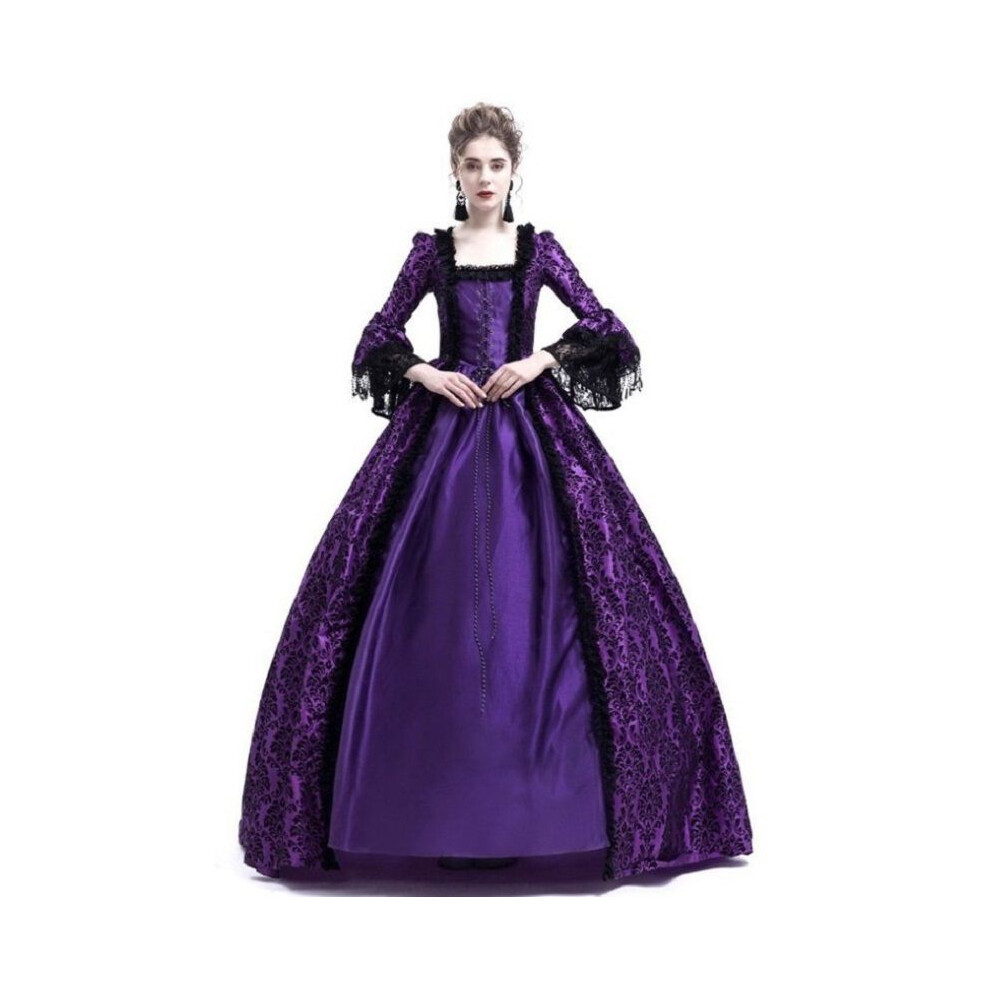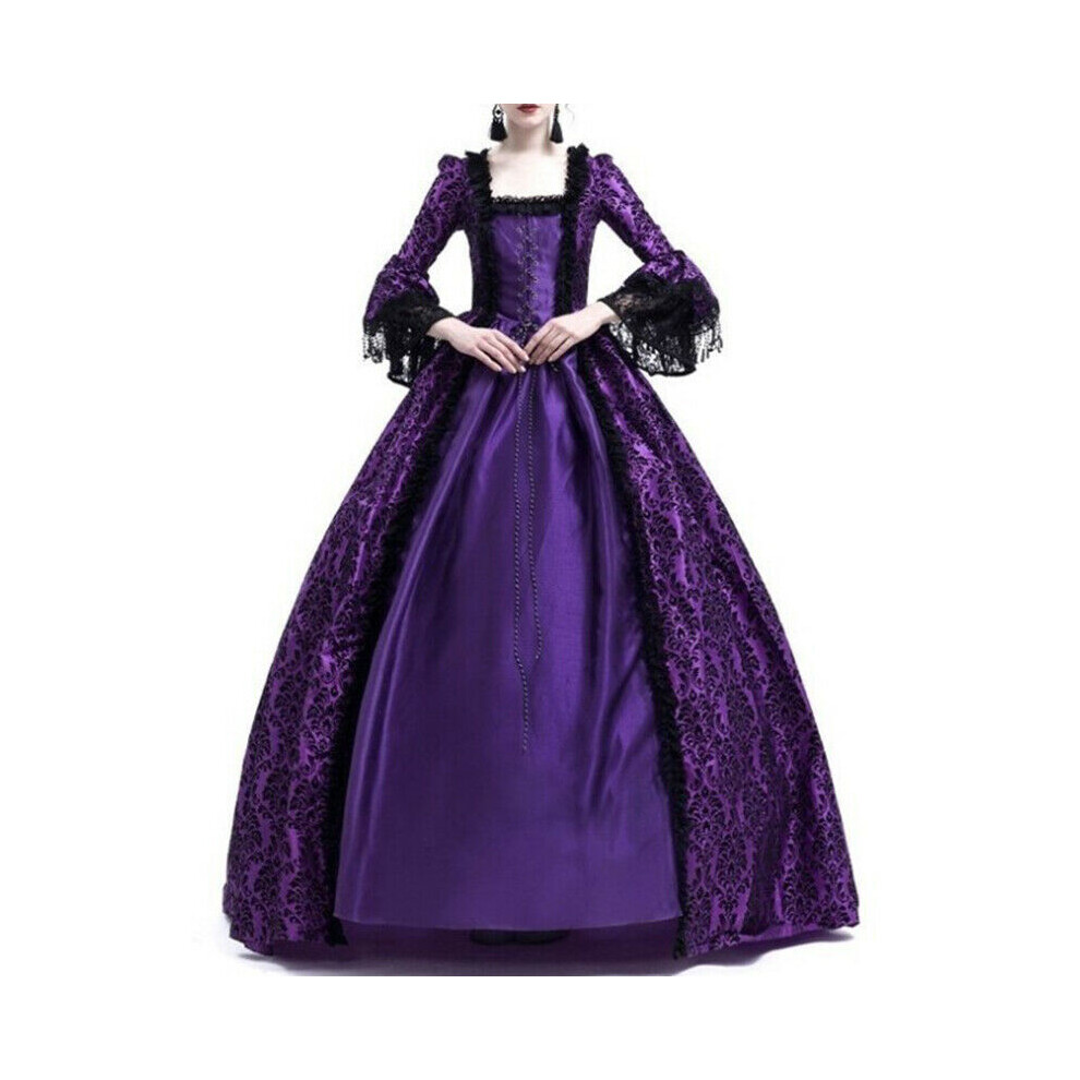 (Purple, L) Marie Women Medieval Antoinette Costume Renaissance Gothic Maxi Dress Victorian