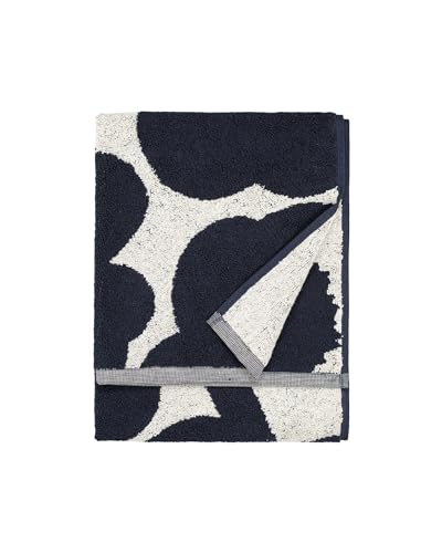 Marimekko Unikko Terry Cotton Bath Towel (Dark Blue) – Floral Patterned Bath Towels – 59 in x 28 in