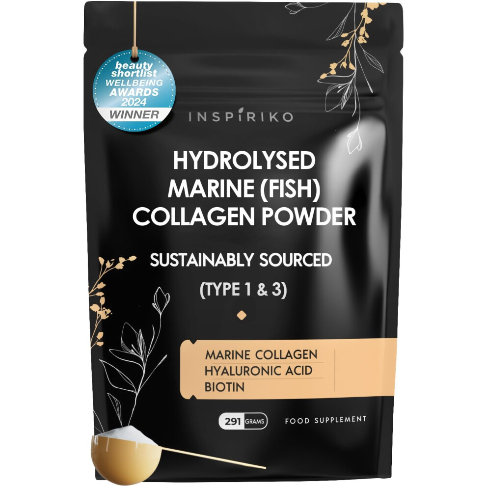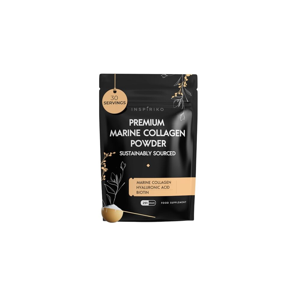 Inspiriko Marine Collagen Powder for Women - Marine Collagen with Hyaluronic Acid, Vitamin C, Biotin and MSM. Hydrolyzed Collagen Peptides Backed by 6 Clinical Studies, 30 Servings