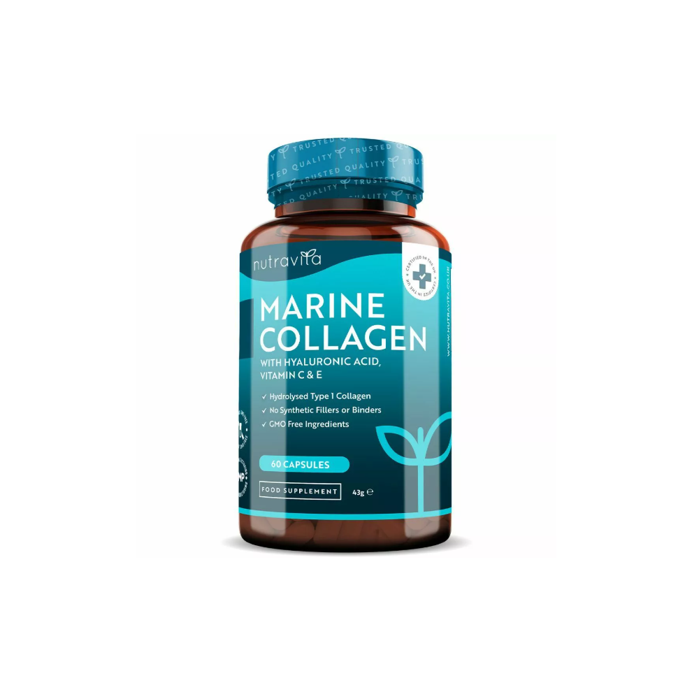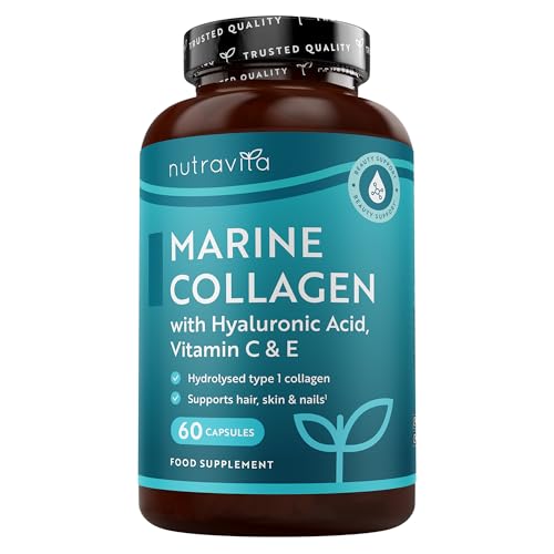 Nutravita Marine Collagen 1000mg - 60 Capsules of Superior Type 1 Hydrolysed Collagen - Enhanced with Hyaluronic Acid, Vitamin C, Vitamin E, Vitamin B2, Zinc, Copper and Iodine - Made in The UK