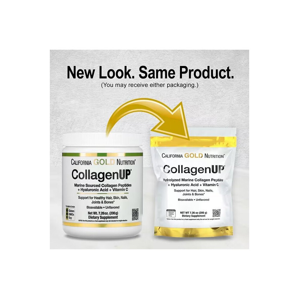 California Gold Nutrition Collagen UP Dietary Supplement Marine Collagen + Hyaluronic Acid + Vitamin C (206 g)