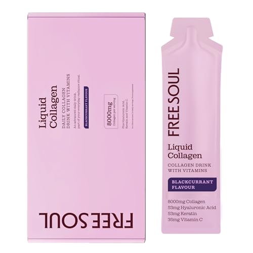 Marine Liquid Collagen 8000mg with Hyaluronic Acid, Keratin, & Vitamin C | 14 x 8000mg Hydrolysed Collagen Peptides Sachets | High Absorption Collagen Liquid Supplement by Free Soul