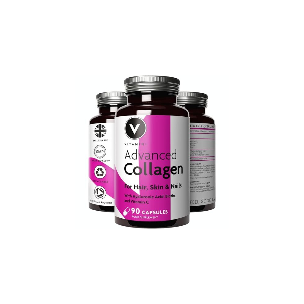 Marine Collagen Capsules + Hyaluronic Acid Biotin Vitamin C & E - Skin Hair