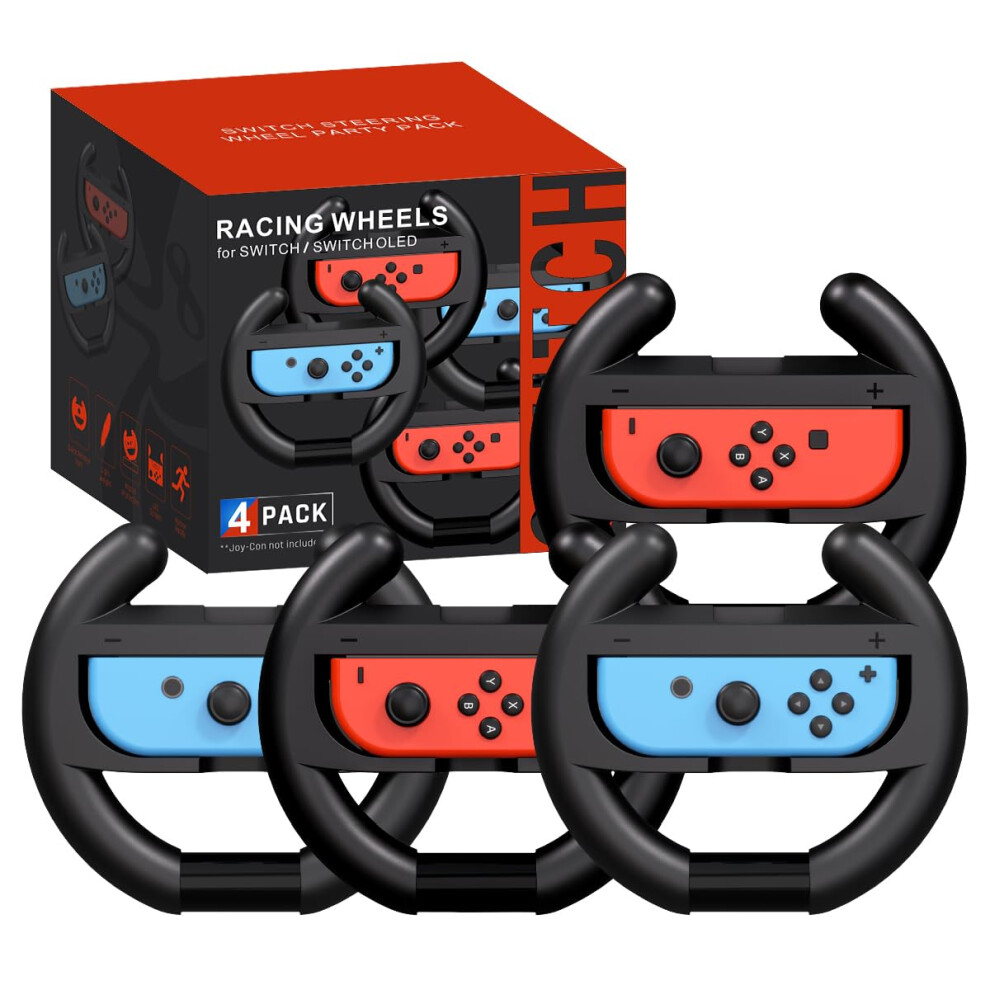 4 Pack Steering Wheel Set for Nintendo Switch and Mario Kart 8 Deluxe, Ergonomic Grip Racing Wheels