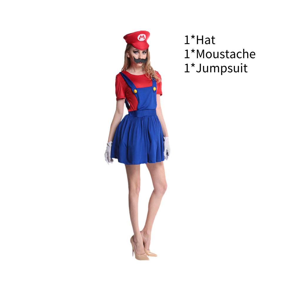 (S) Adult Women Super Mario Costume Fancy Dress Up Hat Outfits Set Party Cosplay