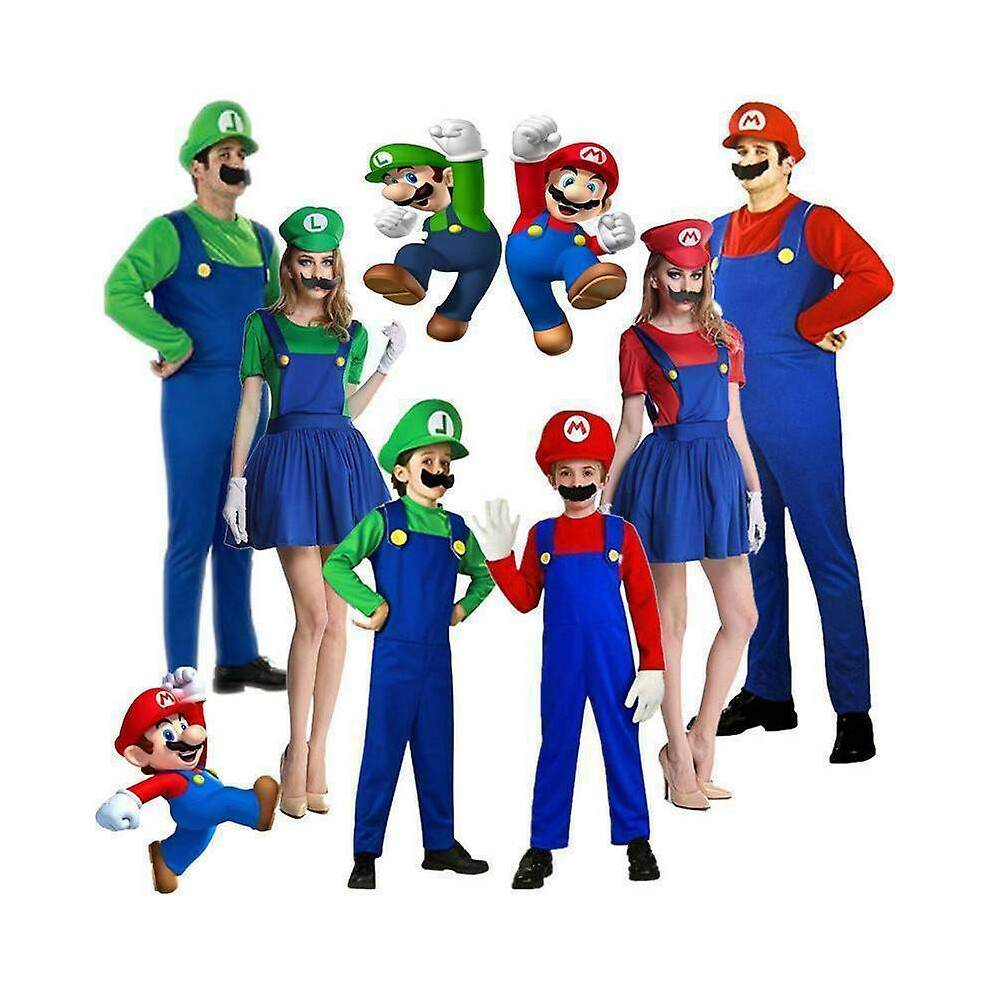 (Red, Men S) 2023 Super Mario Luigi Bros Fancy Dress For Adult Kids Plumber Halloween Party Deluxe Cosplay Costume