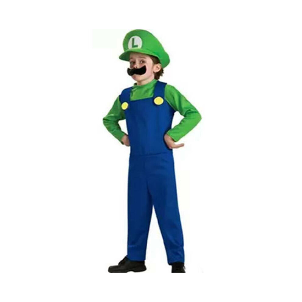 ((Boys) Green Luigi, 7-8 Years) Boy Super Mario Costume Party Cosplay Fancy Dress Outfits Hat Set