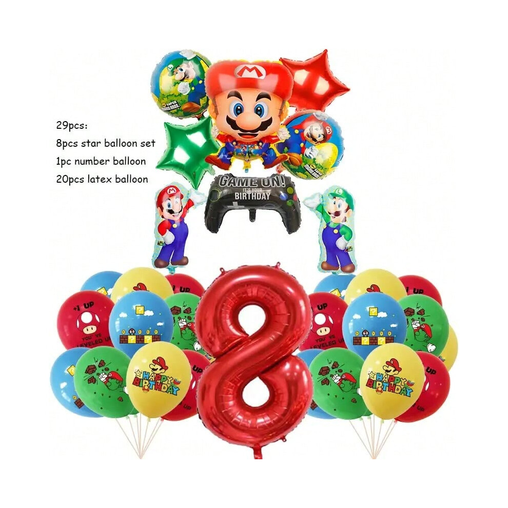 (balloon set 8, 10inch) Super Mario Bros Birthday Party Decoration Disposable Tableware Balloons Cups Plates Napkins Backdrop Birthday Deco Supplies S