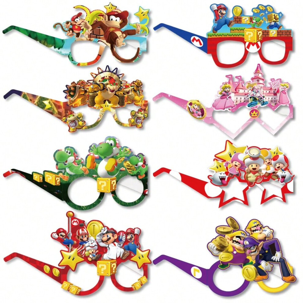 Super Mario Birthday Party Glasses Video Game Photo Booth Prop Eye Mask 8pcs