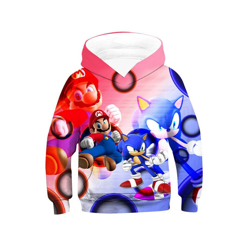 (8-9 Years, F) Super Mario & Sonic Kids Hoodies Novelty Print Hoodie Sweatshirts Pullover Tops For Boys And Girls Party And Birthday Gifts