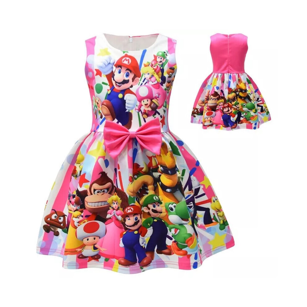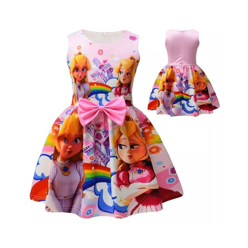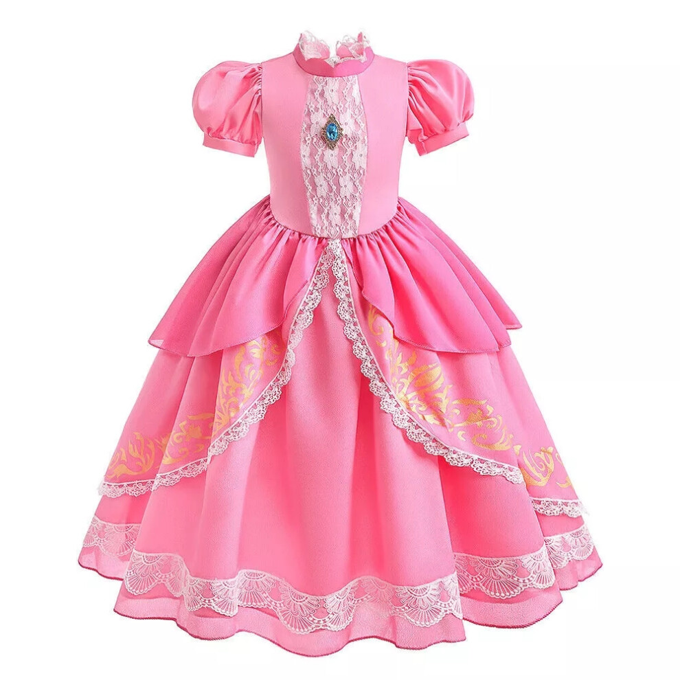 (7-8Years) Halloween Kids Girls Super Mario Princess Peach Ball Gown Party Fancy Dress Cosplay Costume