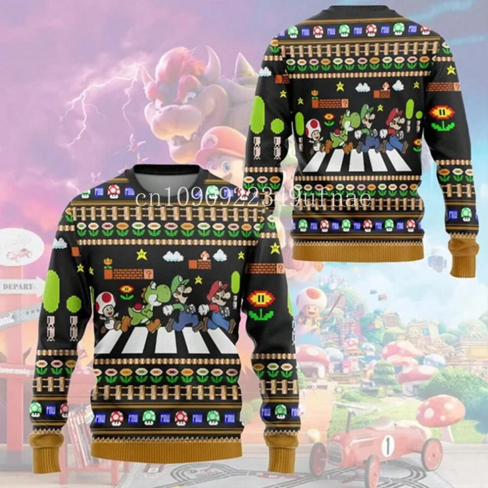(8, K110) Boo Super Mario Bros Ugly Christmas Sweater Unisex Kids 3D Ugly Sweater Christmas Party Shirt Mens Winter Pullover