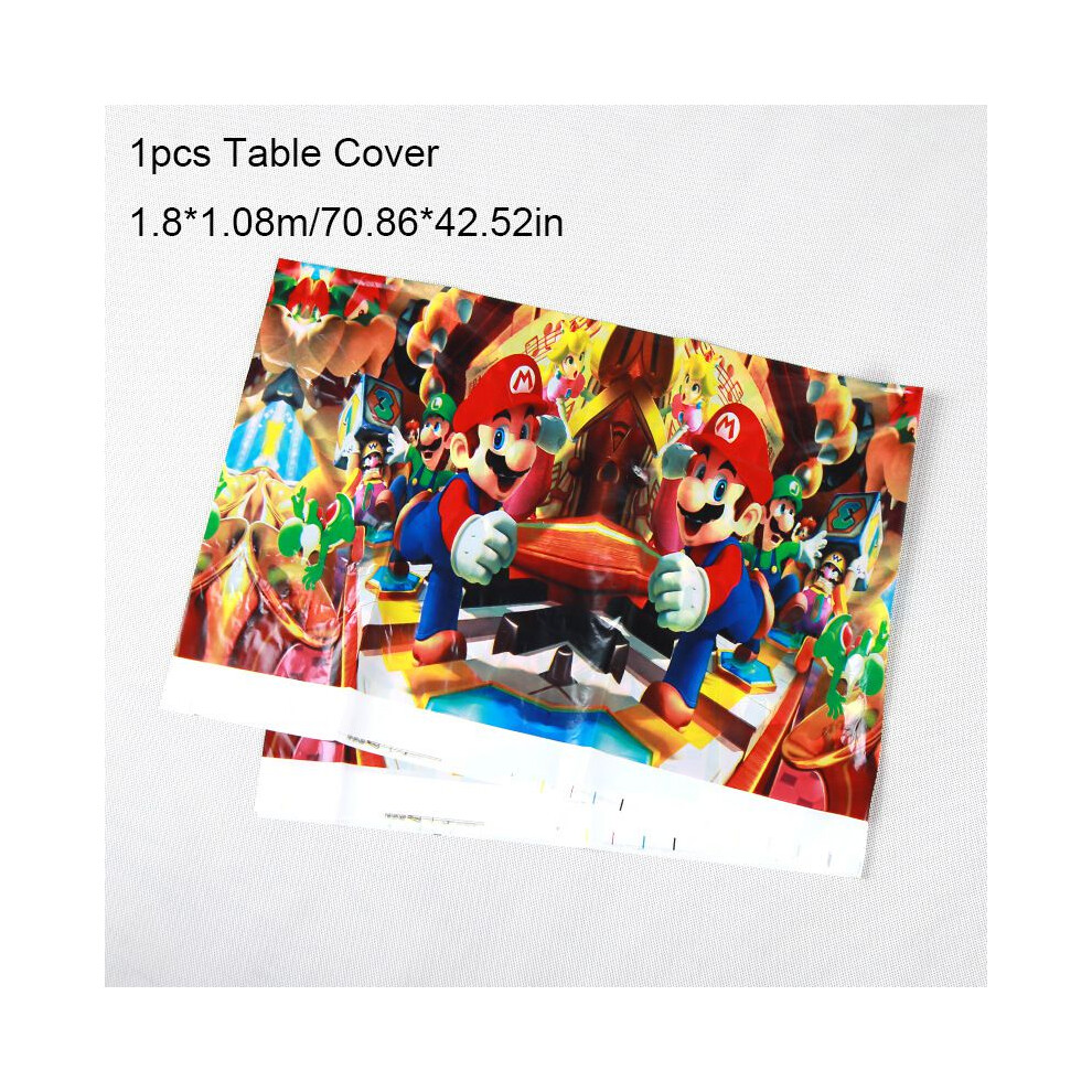 (1pcs-Table Cover-1.8*1.08m) Mario Themed Super Birthdy Party Supplies Decor Banner Cups Tablecloth Napkins
