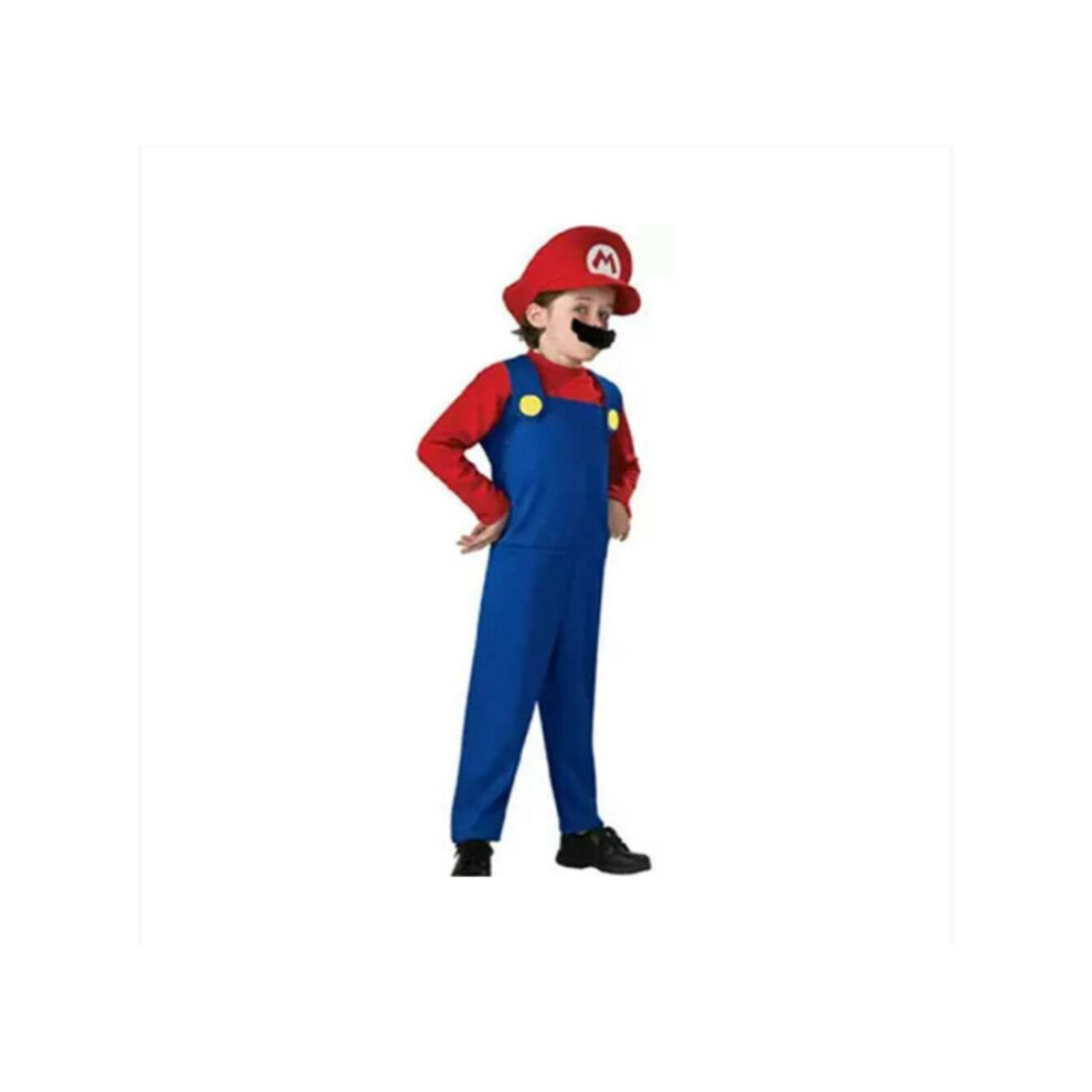 ((Boys) Red Mario, 7-8 Years) Kids Super Mario Costume Fancy Dress Up Hat Outfits Set Party Boys Cosplay