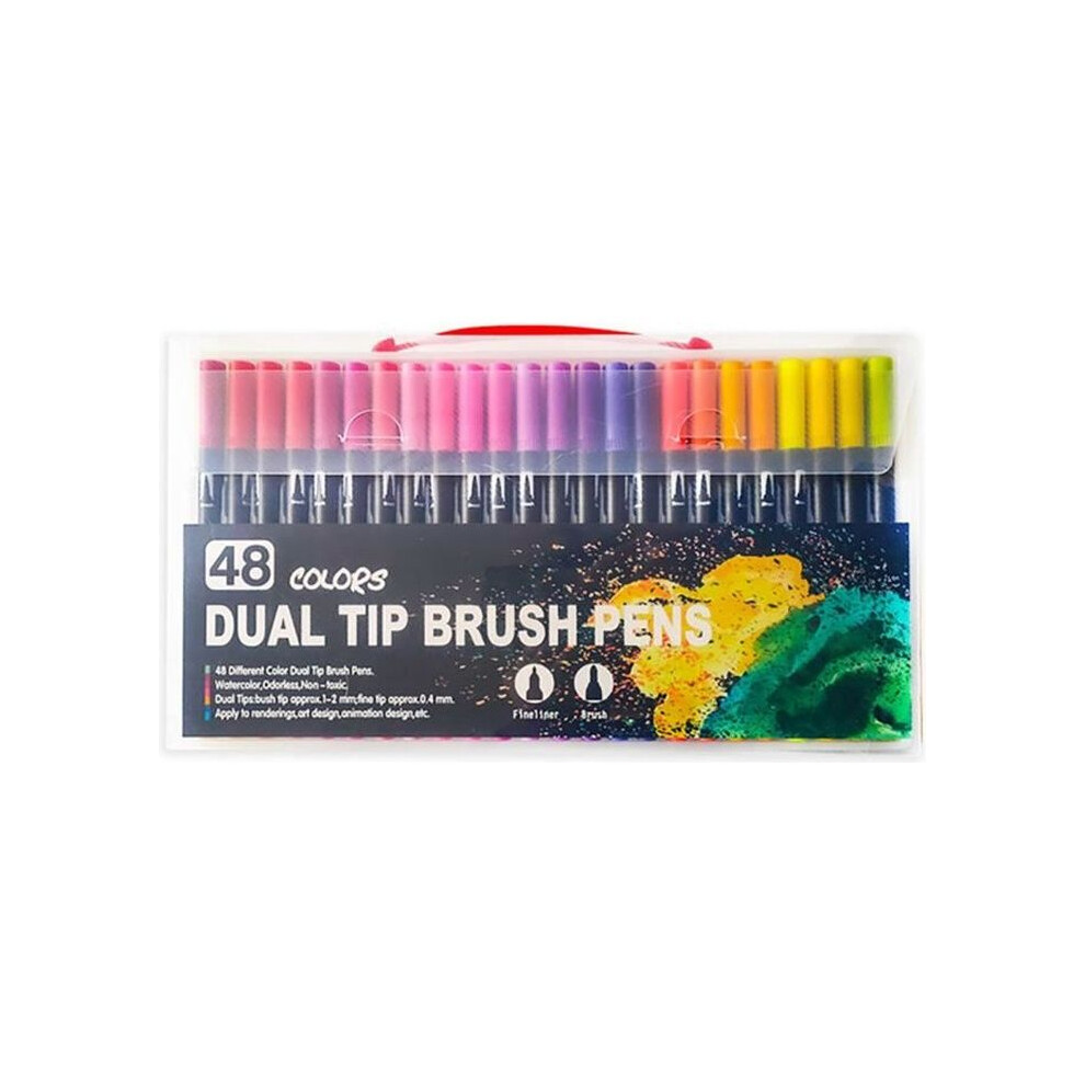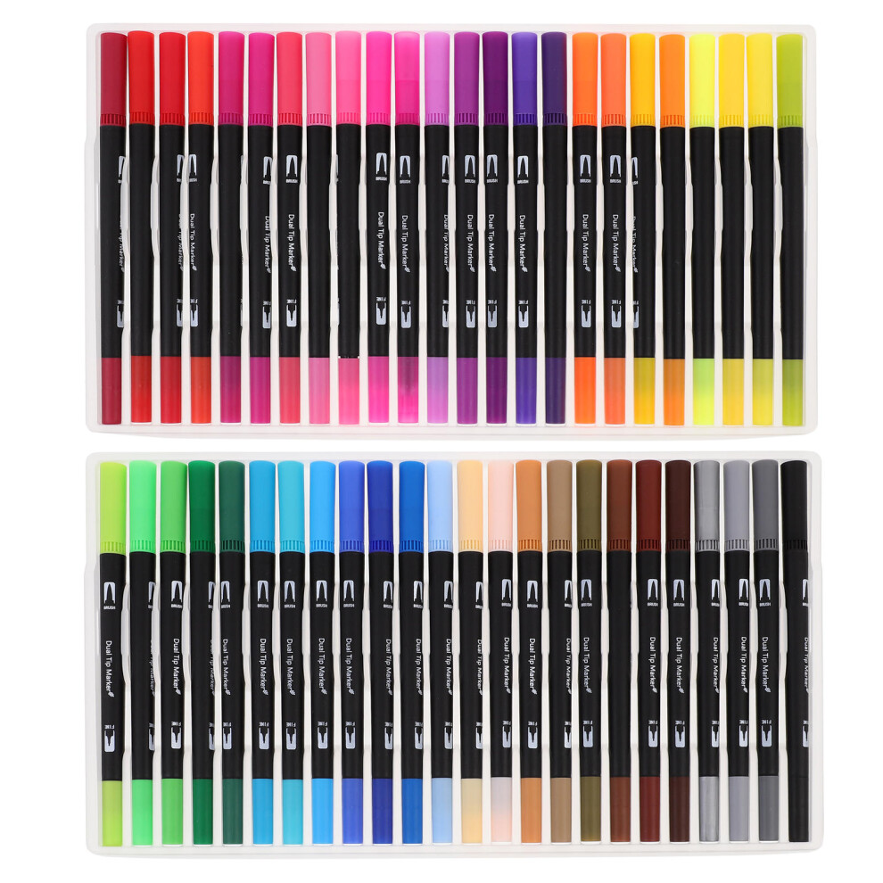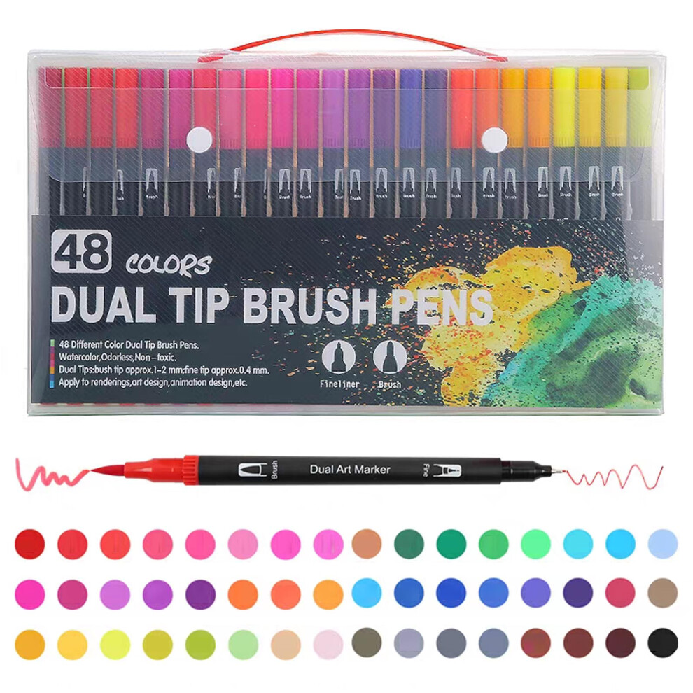 48 Dual Felt Tip Pen Set Acrylic Paint Markers Brush Marker Pens For Coloring And Drawing Scrapbooking School Supplies Adults And Kids