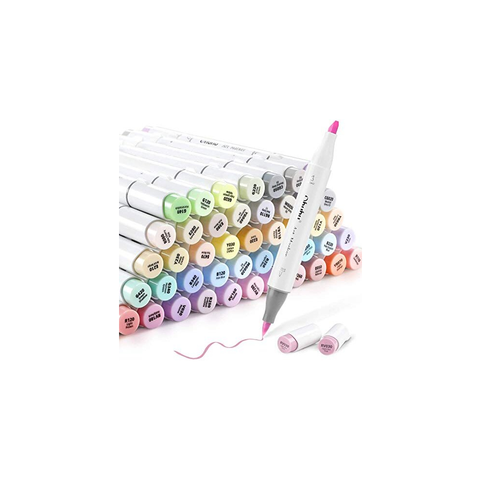 Ohuhu Colouring Pens 48 Pastel Colours Permanent Marker Pens Dual Tip Brush & Chisel Sketch Marker for Artist, Students, Brush Markers for Sketching, Adult Coloring Calligraphy Drawing