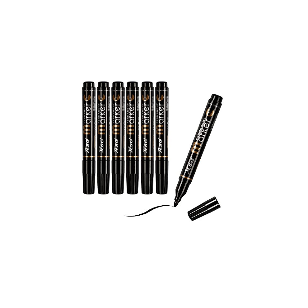 Black Permanent Marker pens, Bullet Tip,6-count thick markers,Works on Wood,Stone,Plastic,Metal and Glass for Doodling, Coloring, Marking by XSG