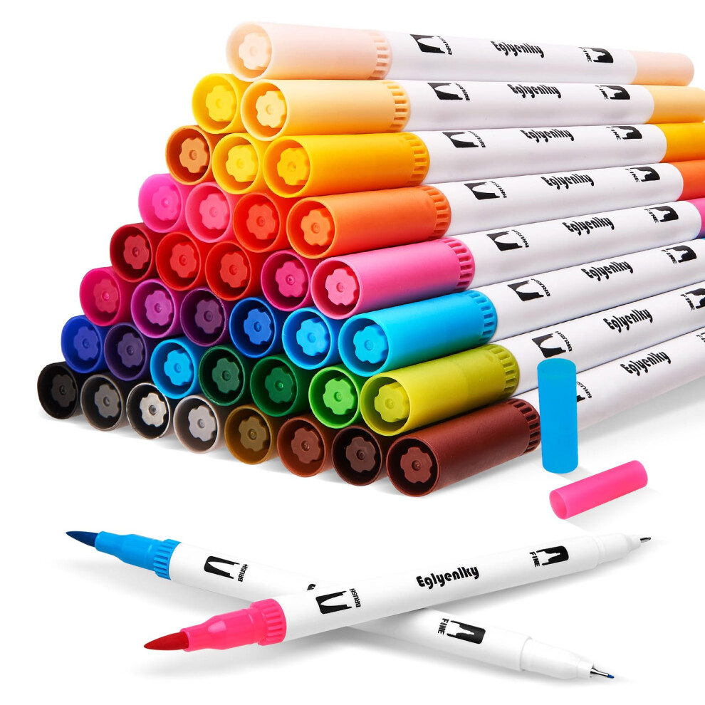 Eglyenlky Colored Markers for Adult Coloring Book, Felt Tip Marker, Dual Tip Brush Pens with Brush and Fine Tip for Adult Teen Kid Drawing (36 Colors Set)