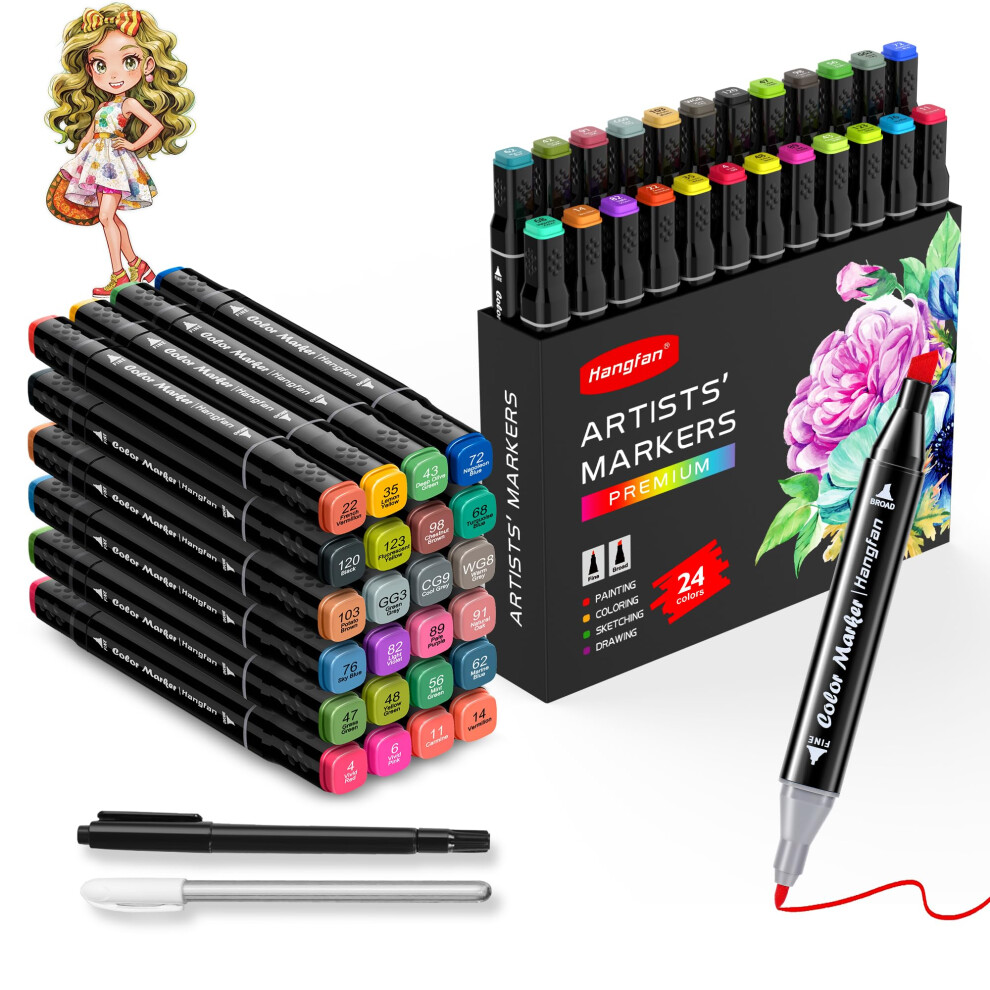 hangfan 24 Colors Alcohol Markers,Pens for Adult Coloring Oily,Permanent Marker Set P