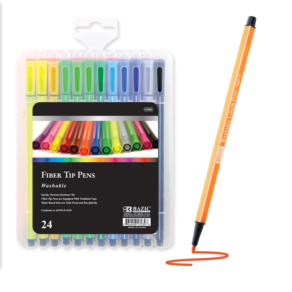 BAZIC Washable Fiber Tip Pen 24 Color Fineliner Pens Fine Point Marker for Writing Drawing Coloring Teacher School Supplies Gift (24/Pack) 1-Pack