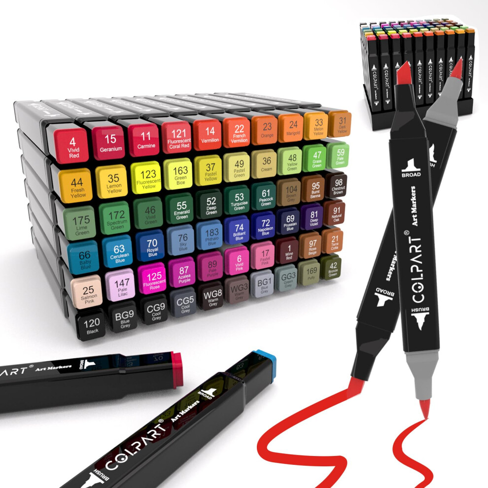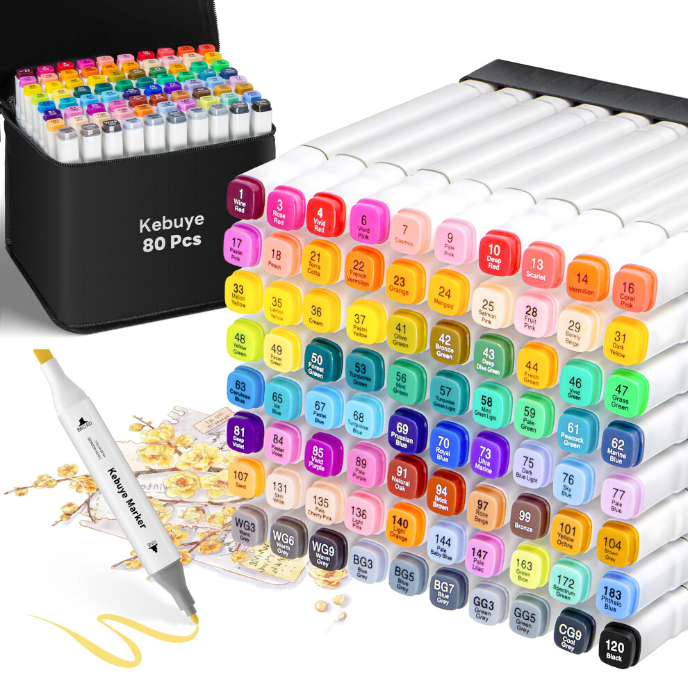 Alcohol Based Art Markers Pens - 80 Colors Marker Set Dual Tip Permanent Colouring Pens for Drawing Coloring Graffiti - Double Ended Fine & Broad for