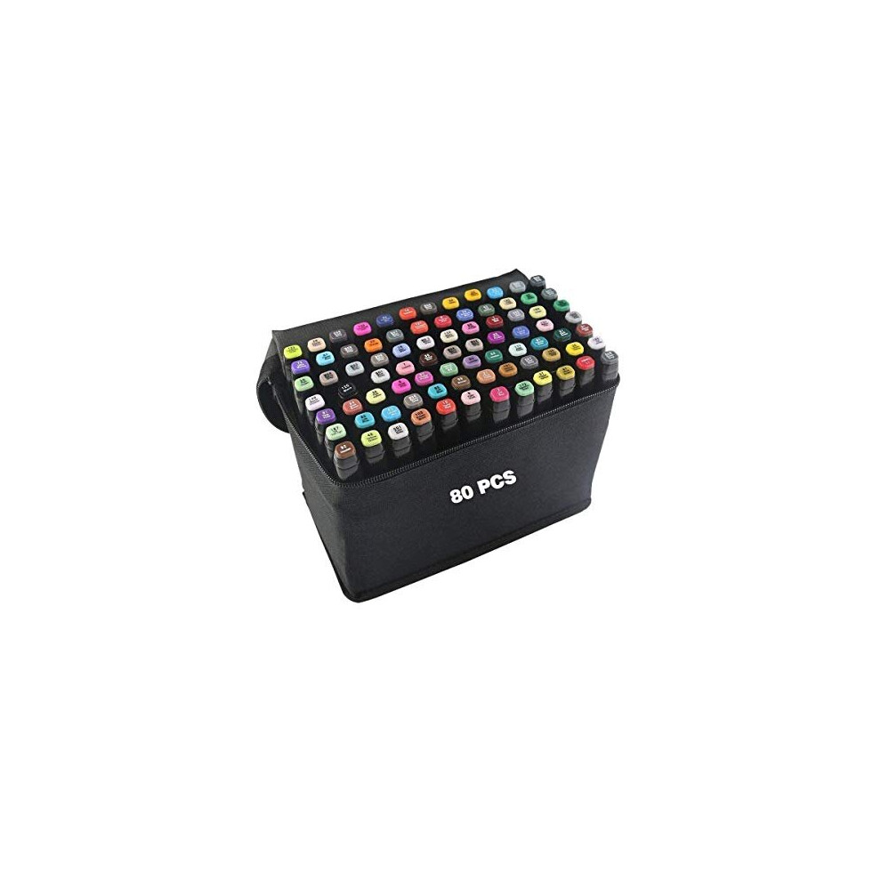 Alcohol Based Art Markers Pens - 80 Colors Marker Set Dual Tip Permanent Colouring Pens for Drawing Coloring Graffiti - Double Ended Fine & Broad for Anime Manga Adults Kids with Carrying Case Base