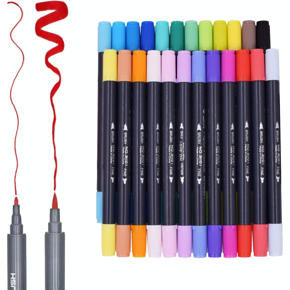 Jnyan Dual Brush Marker Pens, 24 Colors Fine & Brush Tip for Adults and Kids – Felt Tip for Coloring, Drawing, DIY Projects, Journaling, Scrapbooking, and School Supplies