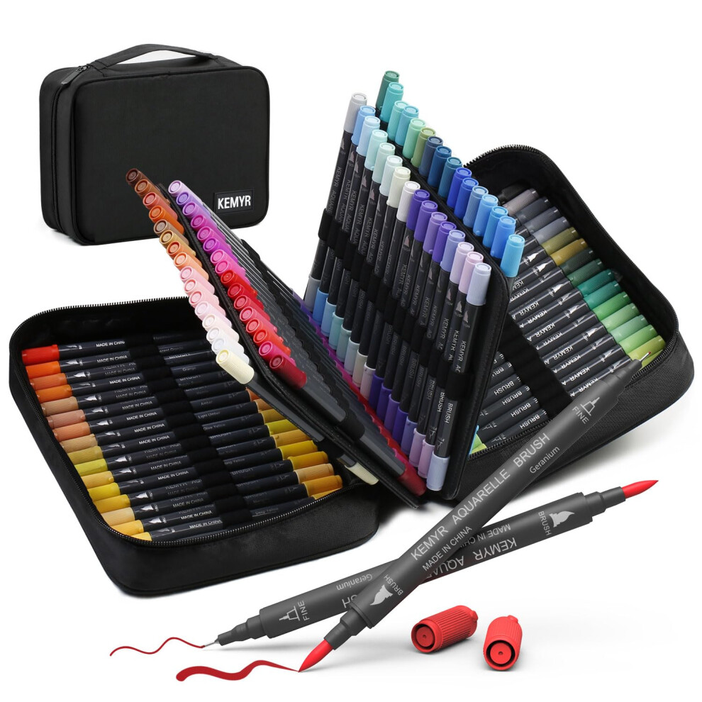 KEMYR Markers for Adult Coloring Books: 100 Color Dual Tip Fine & Brush Pens - Water-Based Coloring Marker for Adults Drawing Sketching Bullet Journa