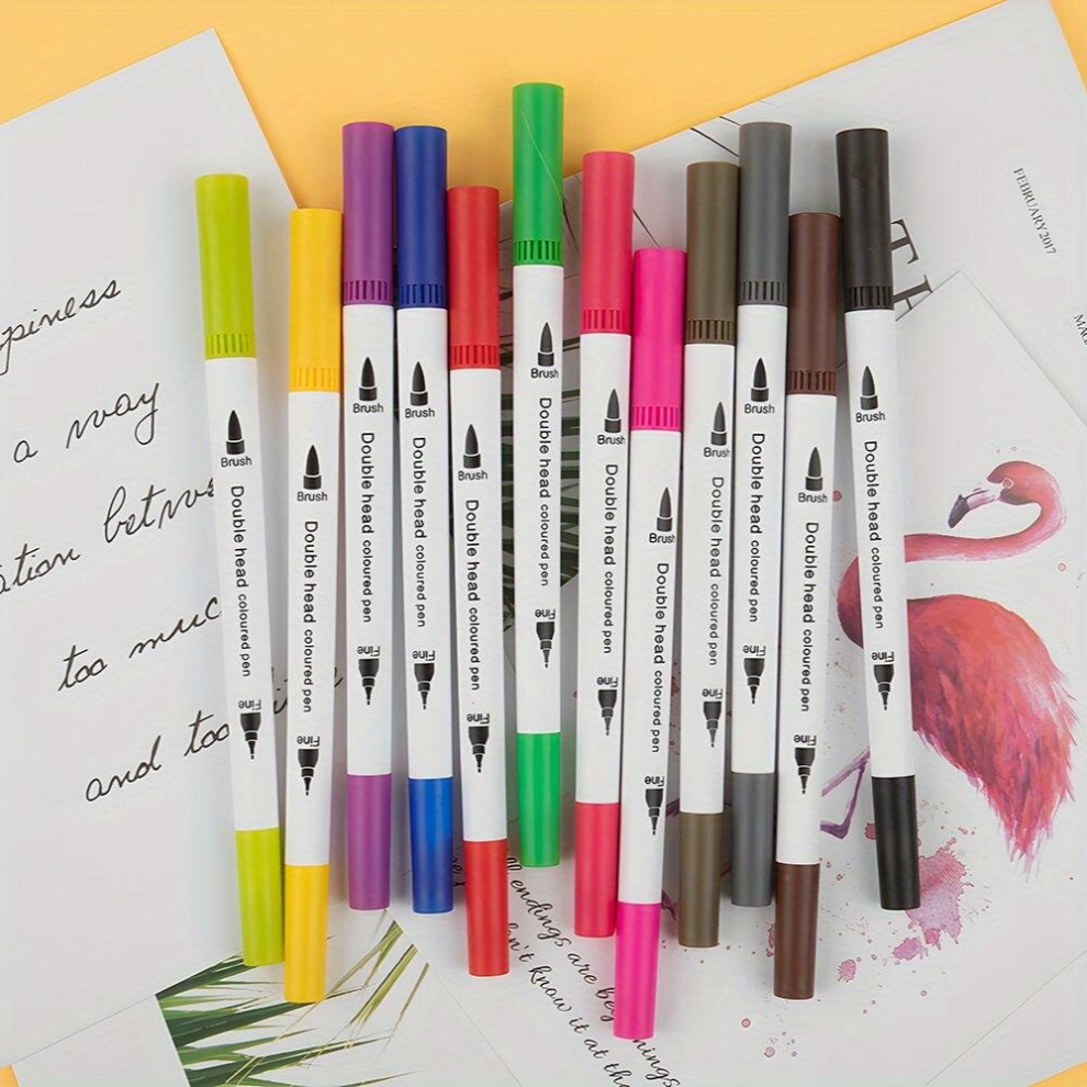 Dual Brush Marker Pens, Dual Tip Design Coloring Markers with Fine Tip and Brush Tip for Artistic Sketching, Water Based Ink Smooth Writing Vibrant Co