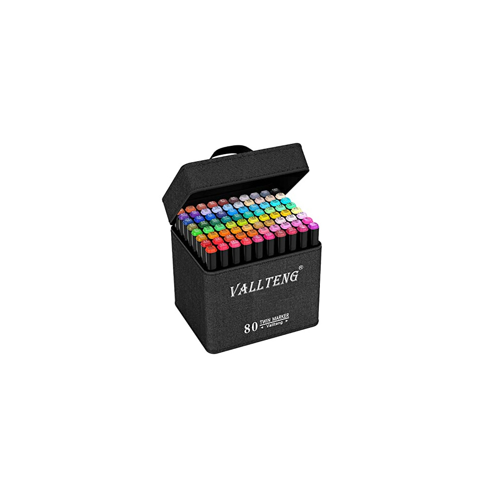 Vallteng 80 Colours Art Markers Set Twin Marker Pens Broad Fine Point Graphic Marker Pen Architecture Design for Drawing Coloring Highlighting an